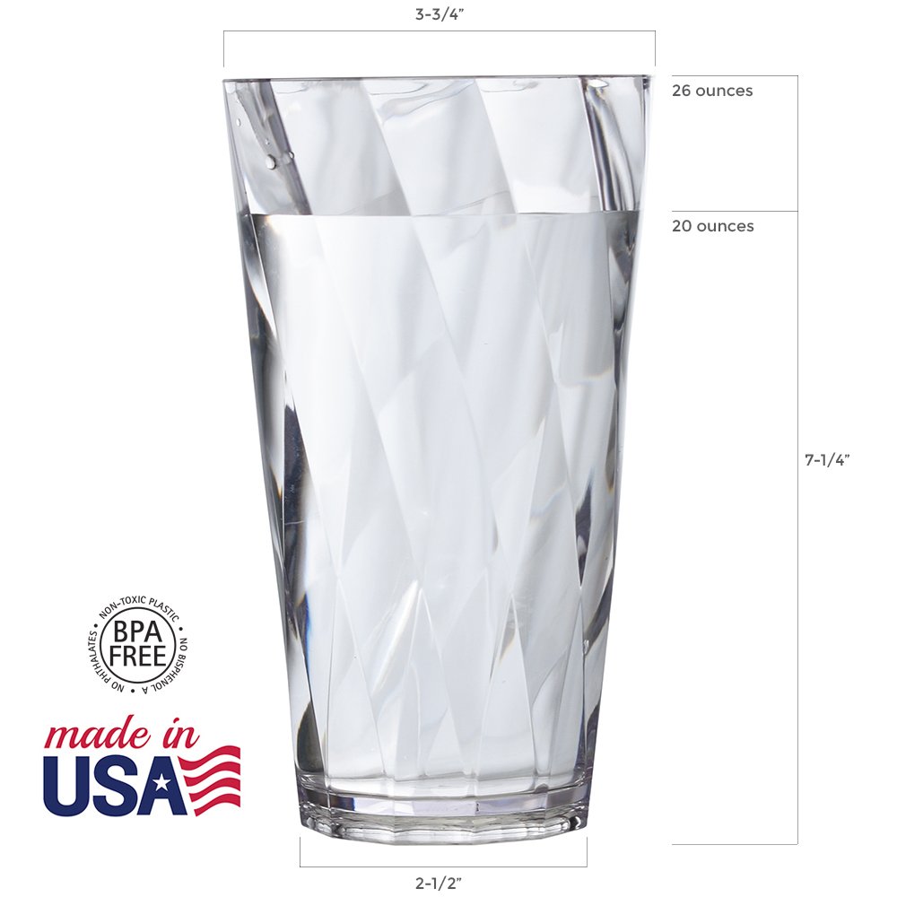 Optix Premium Quality Plastic 26 Ounce Iced Tea Cup Tumblers Set