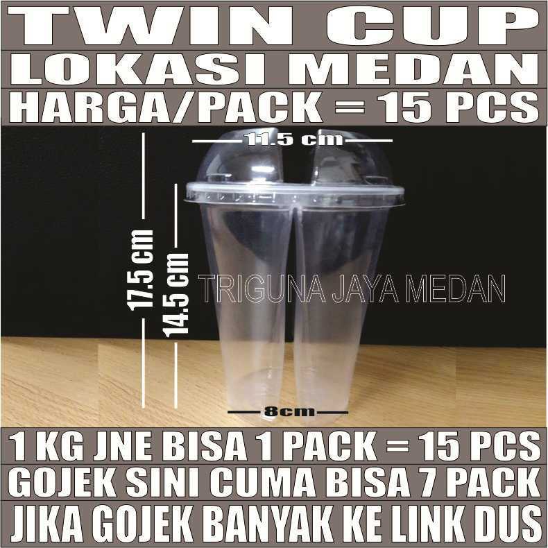 Gelas Kembar Twin Cup 15pcs Dua Rasa Duo Twincup Tutup Cembung 32