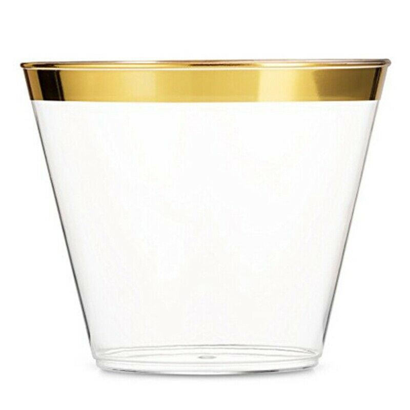 Gold Rimmed Plastic Wine Glasses Cups 9 Oz Clear Fancy Disposable